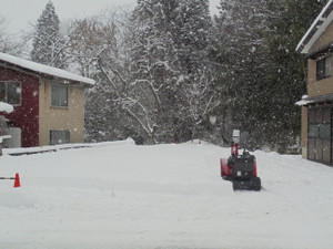 数日前、除雪機のメンテナンスをお願いしている整備屋さんから、「雪が積もりそうなので、バッテリーを確認しておいてください」との連絡をいただきで、あらかじめアイドリングで充電しておいたおかげで、氷点下でも快調に始動しました。